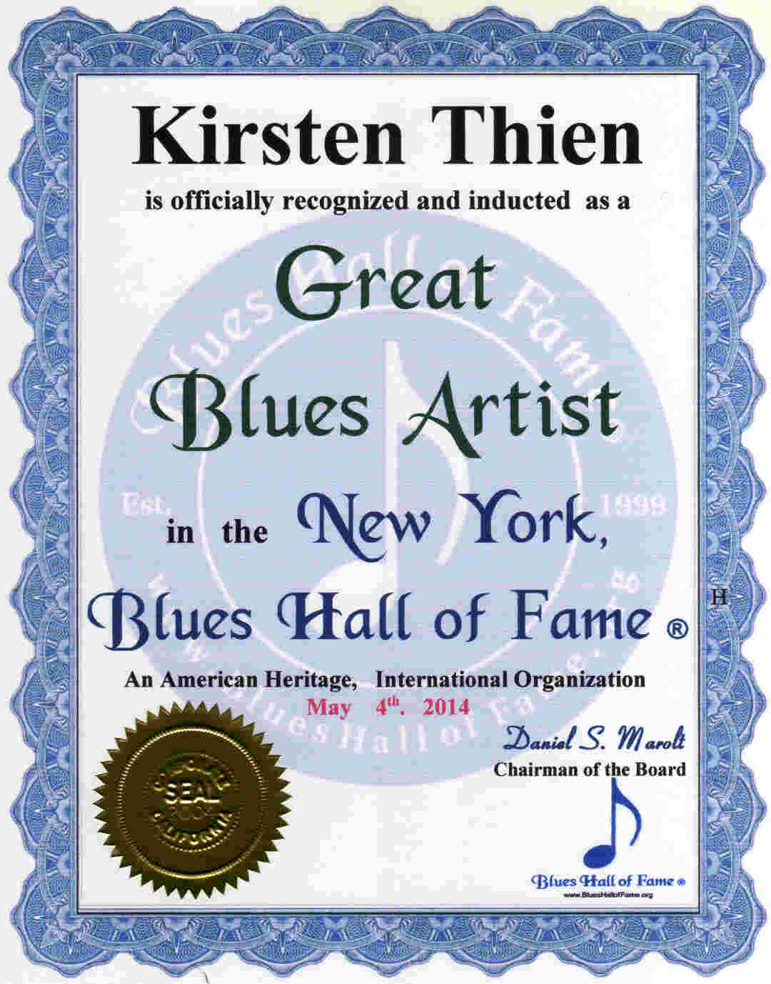 . . .New York, Blues Hall of Fame ® Middletown .. 5-4-2014